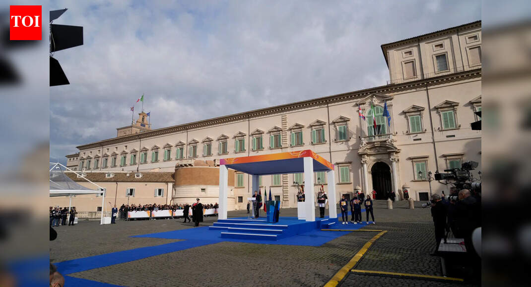 आंतरराष्ट्रीय ऑलिम्पिक समितीचे अध्यक्ष क्रिस्टी कॉव्हेंट्री यांनी मिलान कॉर्टिना २०२६ हिवाळी ऑलिंपिकच्या कौल्ड्रॉन लाइटिंग दरम्यान, रोममधील क्विरिनाल प्रेसिडेंशियल पॅलेससमोर, शुक्रवार 5 डिसेंबर, 2025 रोजी भाषण